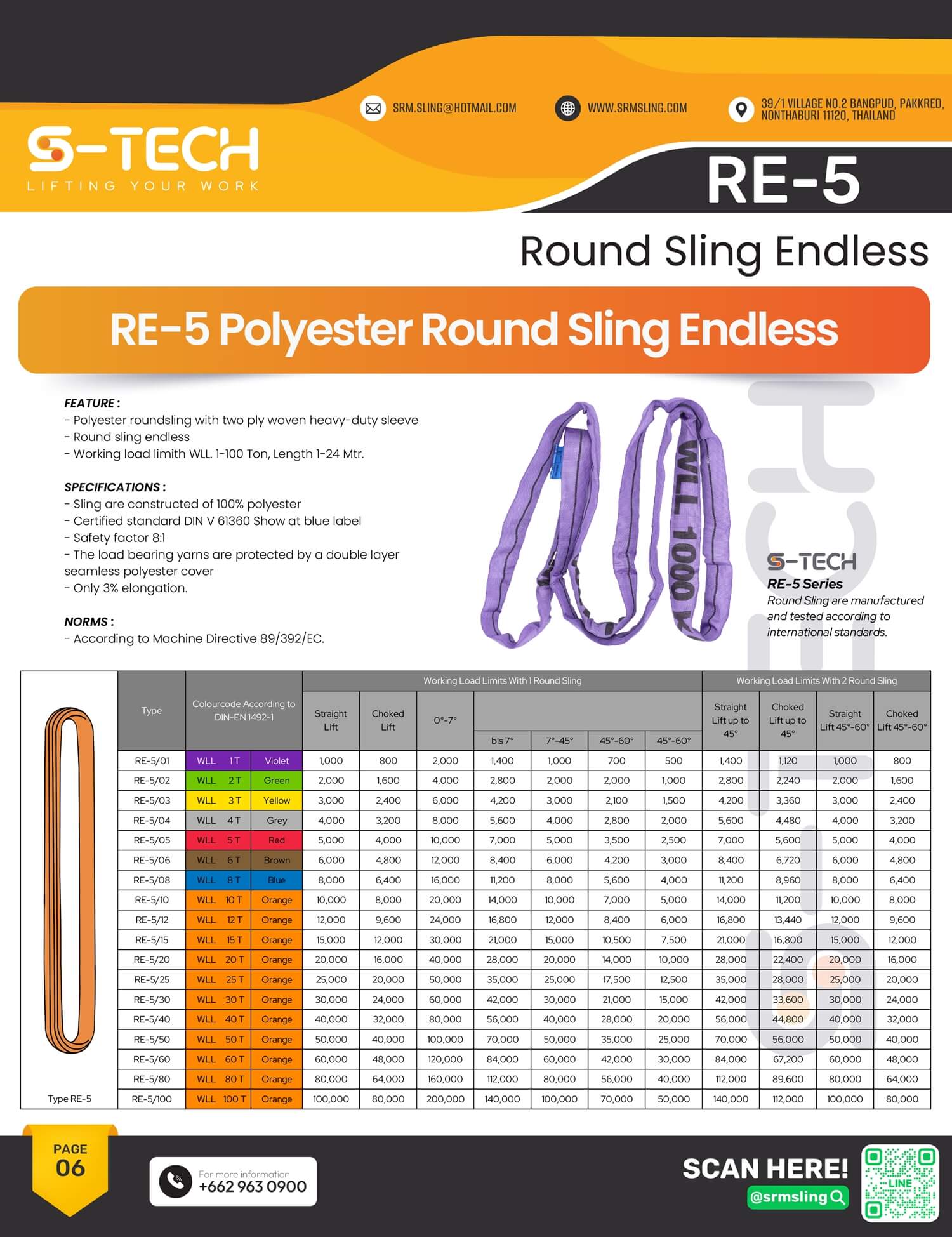 S-TECH (ญี่ปุ่น) RE-5 สลิงโพลีเอสเตอร์กลม แบบวงกลม S/F 8:1 ยี่ห้อ S-TECH *สินค้ามีใบ Certificate/ใบรับรองจากโรงงาน*