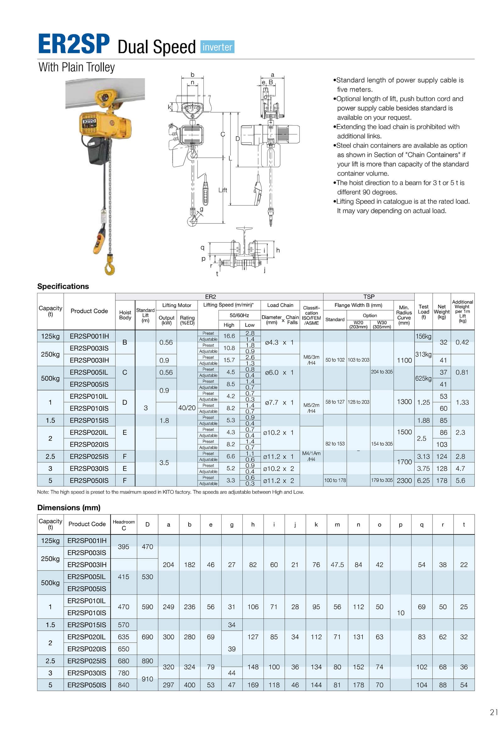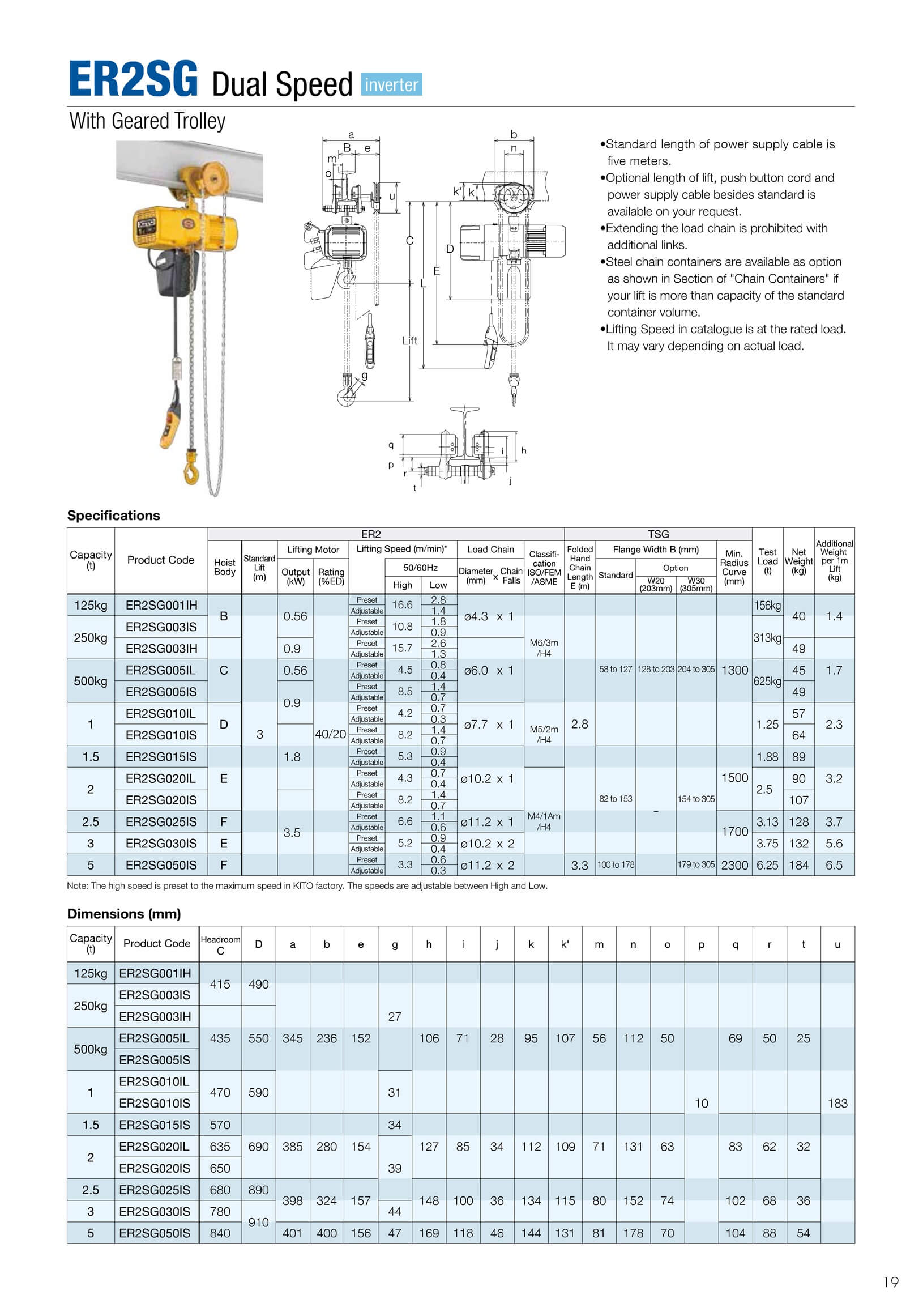 "KITO/คิโต้" รอกโซ่ไฟฟ้า ER2 Electric Chain Hoist